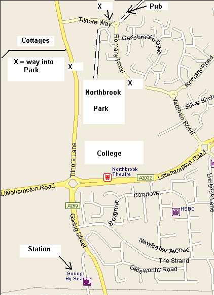 Best to turn off at the A280 flyover and follow directions for West Worthing / Goring. You're now in Titnore Lane, follow it down through the woods for .5 mile. As the woods clear take 1st left into Titnore Way (top of the map).